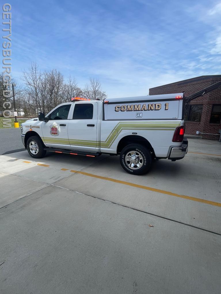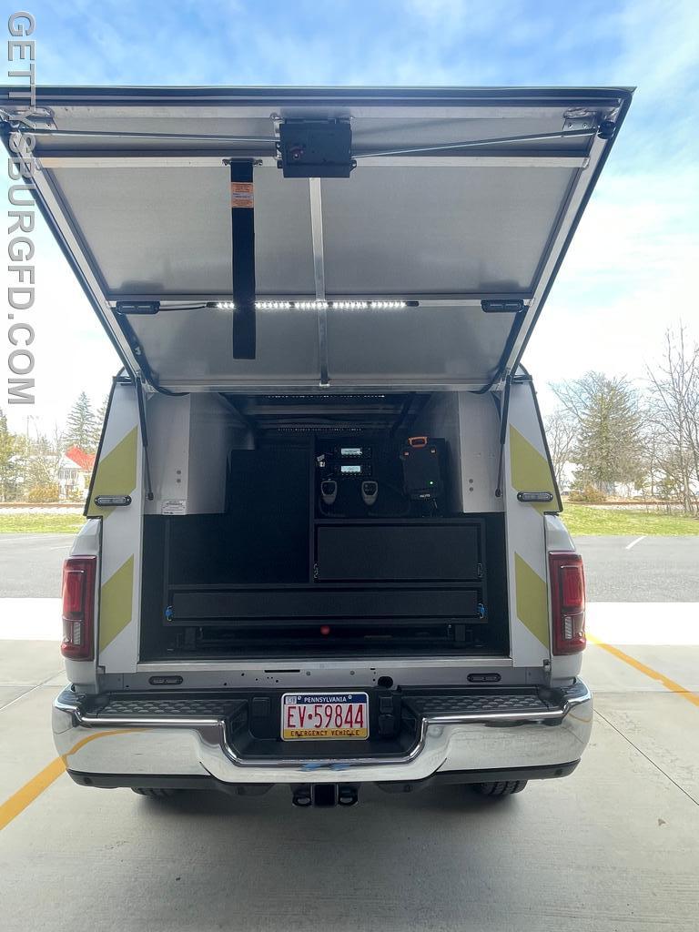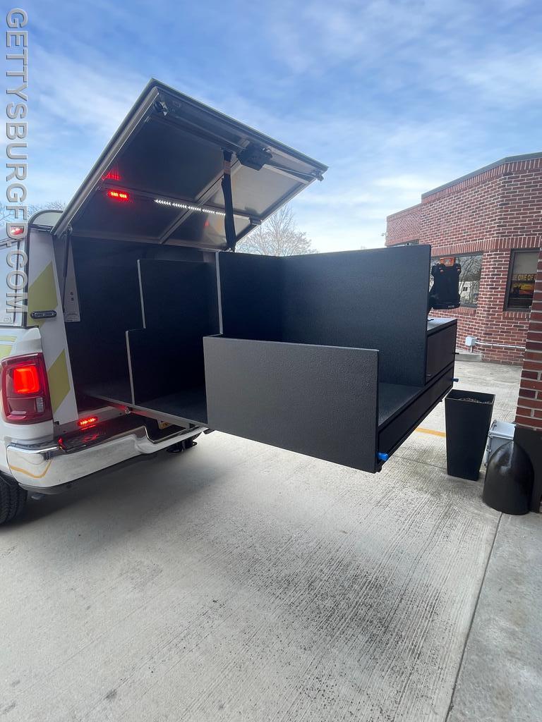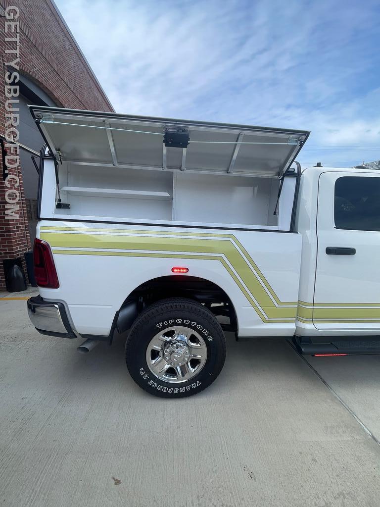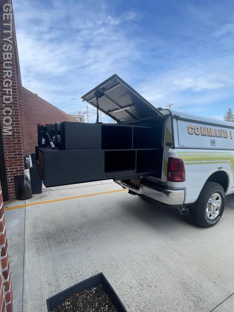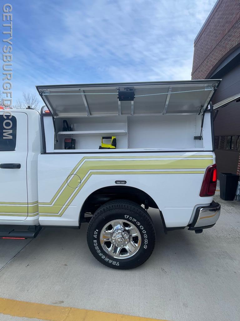 | The Gettysburg Fire Department recently received its new 2026 Dodge Ram 2500 Special Service Edition pickup truck following upfitting modifications by 911 Rapid Response. This Command vehicle will be used by the Chief and Line Officers during emergency responses and will serve as a Command Post when necessary.
