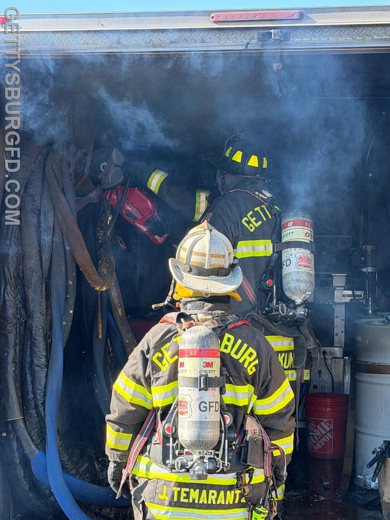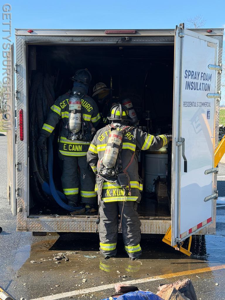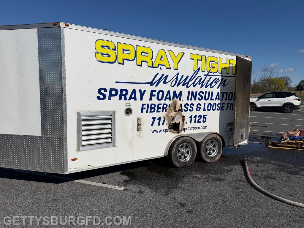 | On April 8th at 9:24 a.m., the Gettysburg Fire Department and Adams Regional EMS were alerted to a vehicle fire in the National Cemetery parking lot off Taneytown Road. Assistant Chief 1 (Mizenko) responded and was informed by Adams 911 that the fire involved a trailer carrying spray foam insulation product.